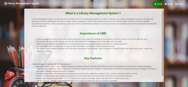 LibM is basically a simple library management system that helps effective management of books. Key Features: Role-based aunthenticated actions such as add / update / delete books from stocks and issue books.
