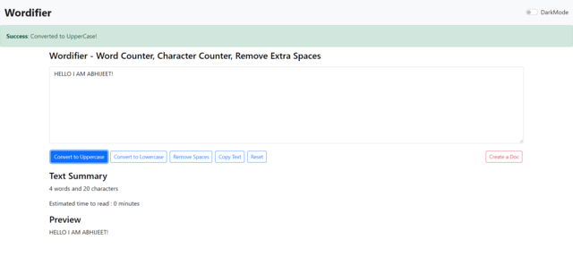 Wordifier is a web tool to modify your texts. Key Features: Convert to upper / lower cases, remove spaces, copy text and create docs like any other text-editor.